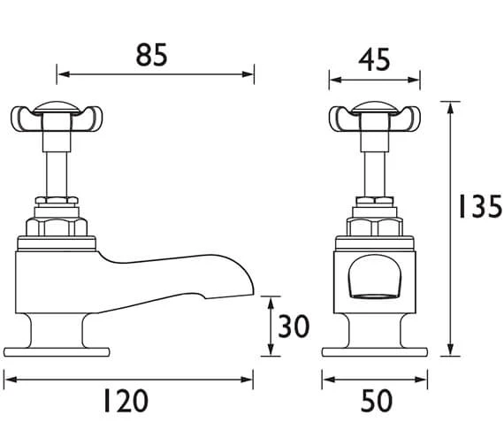 Bristan 1901 Pair Of Traditional Bath Taps