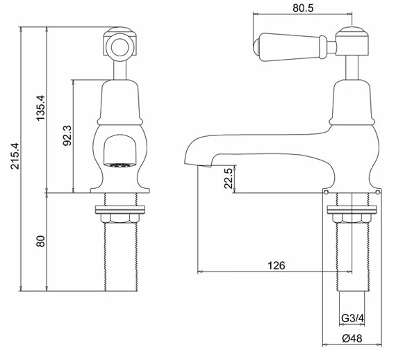 Burlington Chrome Bath Pillar Taps With Kensington Handles