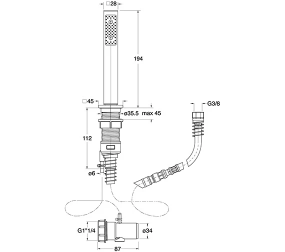 Crosswater Follow Me Deck Mounted Square Chrome Shower Handset And Hose