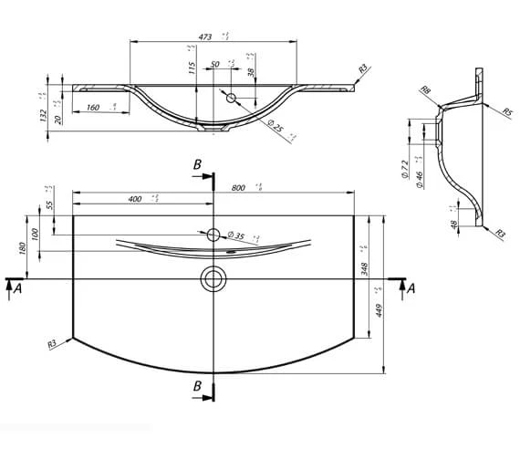 - Size: 800mm x 449mm x 132mm (Width x Depth x Height).