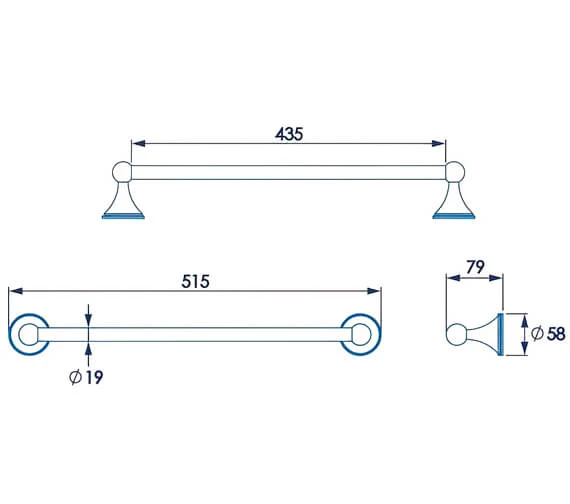 - Single towel rail size: 57 x 520 x 80mm [Height x Width x Depth].