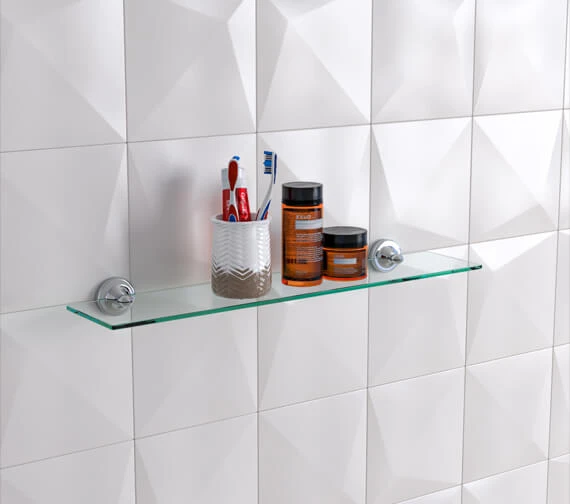 Add elegance and functionality to your bathroom with the Croydex Flexi-Fix Glass Shelf. This shelf allows you to store any toiletries with ease so that you can de-clutter your sink and cabinet areas. It comes with an elegantly plated bracket on either side of it to mount it to the wall. These flexible fit brackets only need a screw or some strong glue to go onto the wall wherever you need them to be and at whatever height. This kit comes with everything that you need to install it.