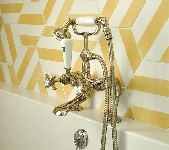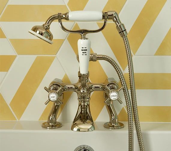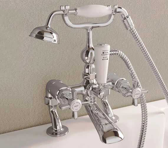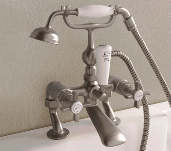 The Heritage Dawlish Bath Shower Mixer Tap is an intricately designed vintage bath and shower mixer tap that will add classic luxury to your bathroom. The product comes with a traditional shower handset, a wall bracket and a . The crosshead handles and the phone-style handset give it its traditional look, while the chrome, vintage gold or brushed nickel finish offers it a more contemporary and clean-looking shine.