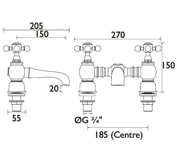 Heritage Hartlebury Deck Mounted Bath Mixer Tap is a great way to enjoy a long bath. The mixer is included with or without a shower kit and comes to you with a choice of chrome and vintage gold for long-lasting shine. It works reliably with a ceramic disc cartridge, while the exterior has a traditional design to bring a classy and elegant touch to your bathroom space. Complete with crosshead handles, it can be deck mounted or used with standpipes on a freestanding bath. Manufactured using brass material, it needs at least 0.2 bar water pressure for smooth working in the bathtub.