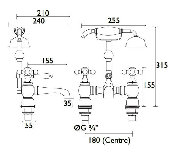 - It can be deck mounted or used with standpipes on a freestanding bath.