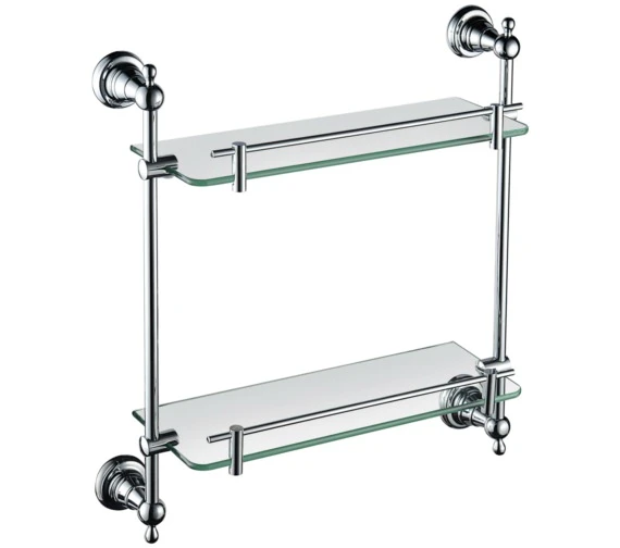Heritage Holborn 410mm Double Glass Shelf With Chrome Brackets