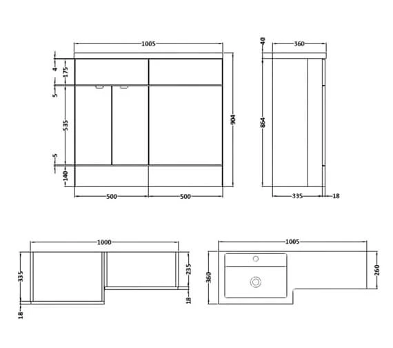 - Overall Size: Width 1005 x Depth 360 x Height 904mm.