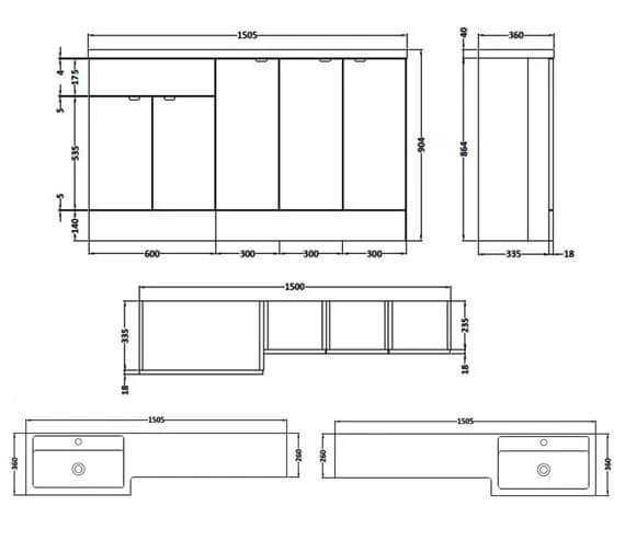 The Hudson Reed Fusion 1500mm Full Depth Furniture Pack – Vanity with 3 Base Unit and Basin is a unique and remarkably spacious set-up that includes a vanity unit, 3 base units, a plinth and a basin. Supplied rigid and ready for installation upon arrival, this product set is available in either left-hand or right-hand configuration and comes in more than one finish for the ultimate in utility and versatility from top to bottom. Supplied with 1 tap hole and an overflow and cover included, this pack also comes with the fixings required for proper installation.