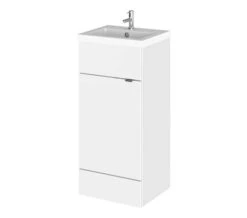 Hudson Reed Fusion Full Depth Vanity Unit And Basin is designed to last through years of use with no signs of wear. Supplied with sufficient storage to keep clutter out of sight, this model is available for purchase in three possible width options and numerous finishes. The product is suitable for Floor-Standing installation within any modern or traditional bathroom layout, anywhere. It is realised from MFC painted gloss and supplied rigid and ready to use. A white finished polymarble basin comes included with the vanity. This unit looks best when paired with a .