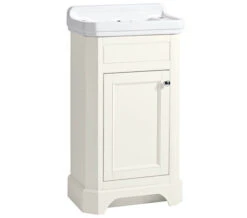 The Hudson Reed Old London 2 Door Floor Standing Vanity Unit with Basin is a stylish, versatile unit that comes with your choice of 1, 2, or 3 tap holes within the included vitreous china basin for use. Complete with soft close doors that include 95-degree inset clip-on hinge, this product is easily opened and closed via the brushed nickel knob style handle. Supplied rigid for fast and easy installation, this model is suitable for placement within a traditional or modern bathroom design style. Available in more than one stylish finish, this unit is constructed from MDF vinyl textured woodgrain that is truly made to last.