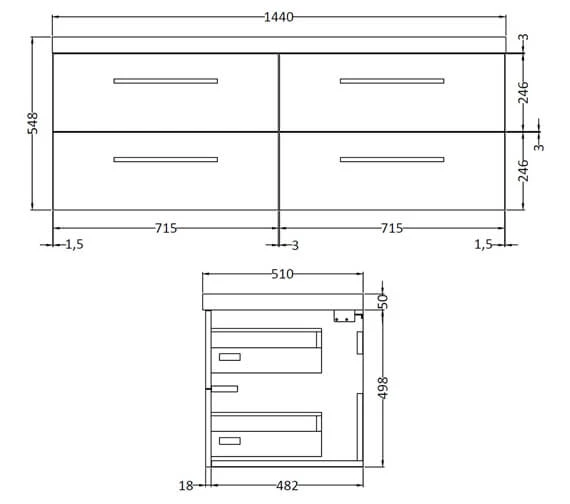 - Overall size: Width 1440 x Depth 510 x Height 548mm.