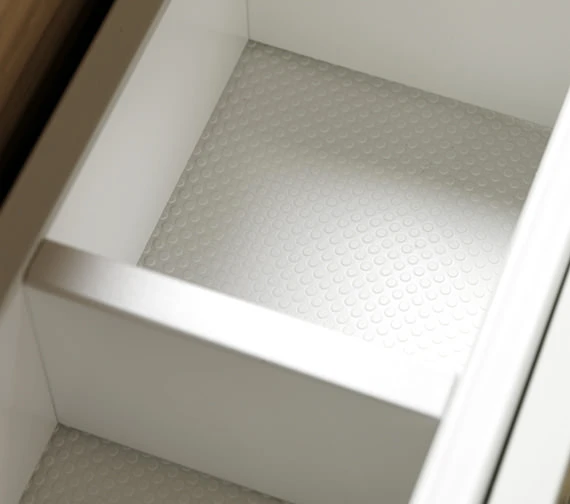 - Top drawer with a removable divider in wood, bottom drawer equipped with a retaining bar and anti-slip carpets.
