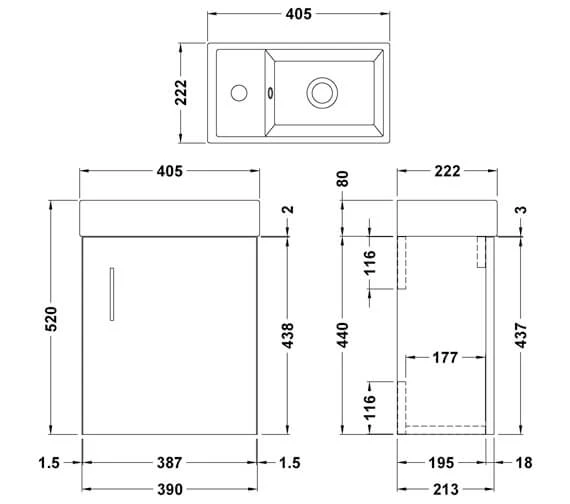 - Sizes: Width 405mm x Depth 222mm x Height 80mm.