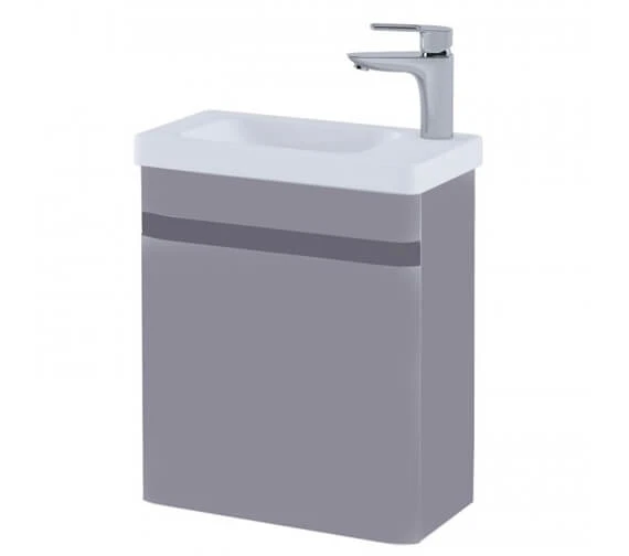 The RAK Resort Wall Hung 450mm Wide Cloakroom Vanity Unit with Basin is available for purchase in 5 fashionable finish options to choose from, all of which come manufactured from excellent and durable MDF and wood materials. Complete with a compatible 450mm inset white vitreous china-crafted basin and created for the secure wall-mounted installation. This product does not include the or the waste shown in the accompanying image. Designed with a single door that opens up smoothly for easy storage of an array of different items, this unit also offers 1 tap hole on the right-hand side of the basin.