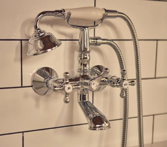 Burlington Wall Mounted Bath Shower Mixer Tap With Claremont Handles