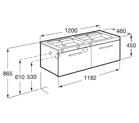 The Roca Prisma Unik Textured Ash 2 Drawer Base Unit with Basin is an amazingly stylish set-up that includes both the base unit, as well as the basin, for a fully functional design. This ensemble looks incredible paired with nearly any style of bathroom decor. Designed for simple wall hung installation or wall installation, this mounted unit also comes with a space saving waste, so the user has full use of both soft close drawers and the hidden internal drawer found underneath.