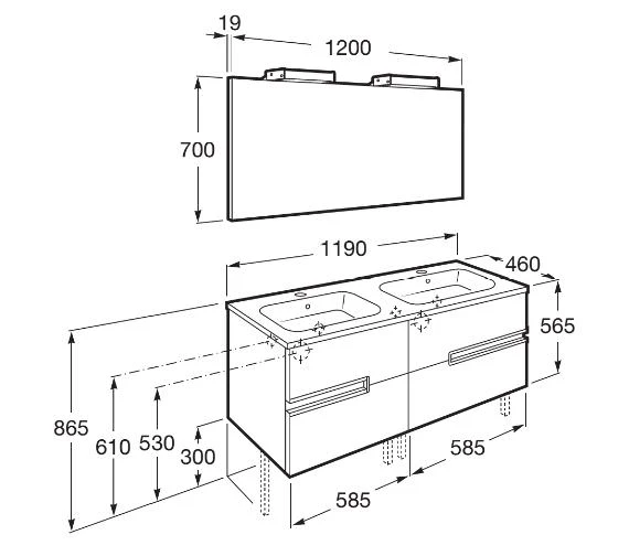 Roca Victoria-N 1200 X 565mm Vanity Unit Pack With Mirror And Spotlight -Shower Room M 2017 3 25 6 18 4 634