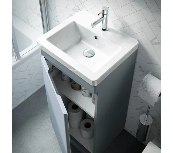 The Saneux Air One Door Floor Standing 400mm Unit with Basin and Waste Trap is offered in a stylish, yet functional, form and features truly high-quality construction from top to bottom. Supplied complete with a 1 tap hole basin, super low-profile waste, and a trap, this model does not include the tap shown in the accompanying image. Available for purchase in three lovely finish options to choose from, this product also boasts 1 smooth opening door and a remarkably spacious storage area for use within the unit as well.