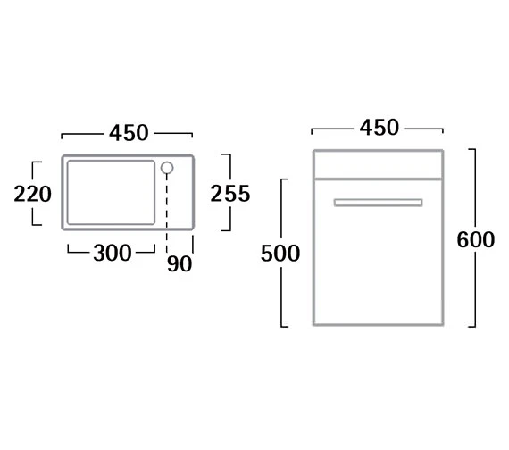 - Dimensions: 450 x 600 x 255mm [Width x Height x Depth].