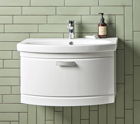 The Tavistock Tempo Vanity Unit with Basin is a meticulously crafted vanity with stunning gloss white finish. This unit comes with a single soft-close door and sleek handle finished in chrome. The wall-mounted unit comes with a unique curved design basin which is manufactured from high-grade ceramic. Take this product home with pride as the manufacturer provides a guarantee of ten years on the vanity unit and 20 years on the ceramic basin.