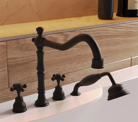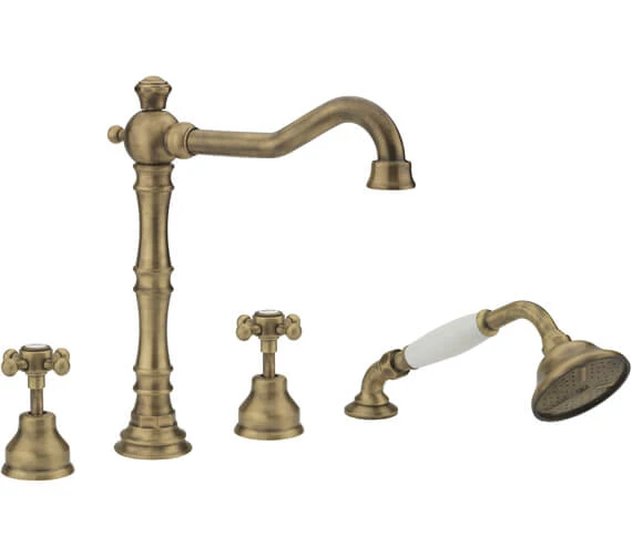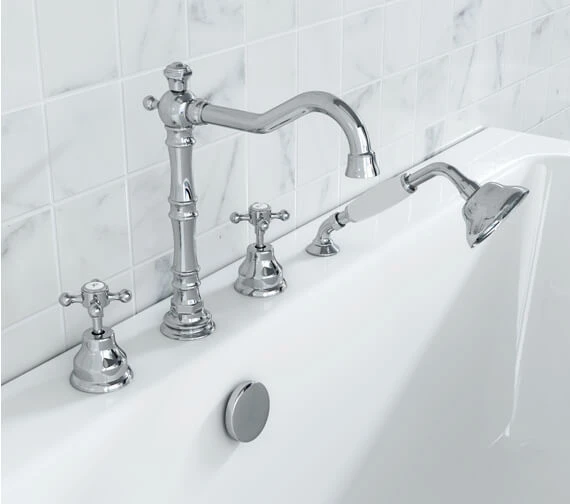 Tre Mercati Allora 4 Tap Hole Bath Shower Mixer Tap With Kit delivers in style and practicality. It matches in versatility with its beautiful finishes, making it adaptable to all environments from domestic to commercial. Crafted from superior quality materials this mixer is robust and hard-wearing to withstand daily use. It is supplied with shower kit and features traditional design with twin crosshead handles and is suitable for operation in high pressure systems.