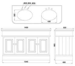 Silverdale Victorian 1400mm Painted Grey Cabinet With Worktop And Basin