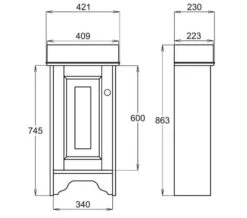 Saneux Air One Door Floor Standing 400mm Unit With Basin And Waste Trap